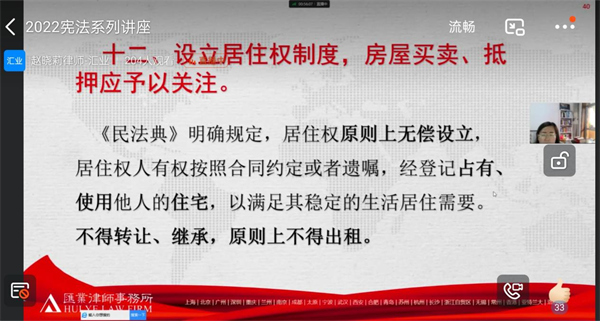 趙律師在憲法解讀方面,從憲法的地位、憲法的發(fā)展歷史、我國憲法的架構(gòu)及具體內(nèi)容進行了解讀,在民法典之合同熱點解讀方面,就民法典中涉及的電子合同、預(yù)約合同、情勢變更制度等熱點問題進行了講授,在公司行業(yè)性質(zhì)方面,就民法典關(guān)于審理建設(shè)工程施工合同糾紛案件適用法律問題的解釋進行了解讀。