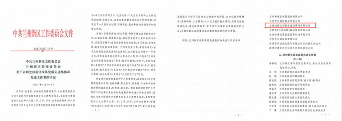 甘肅建投新區(qū)公司榮獲“蘭州新區(qū)改革發(fā)展先進集體”榮譽稱號