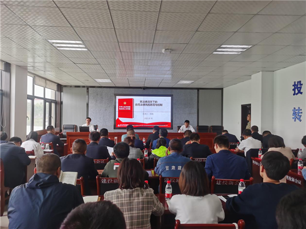 本次講座邀請了上海市匯業(yè)(蘭州)律師事務(wù)所陳勝律師進(jìn)行授課,新區(qū)公司黨委副書記侯德席主持會議,新區(qū)公司、科工集團(tuán)領(lǐng)導(dǎo)班子成員,副科級以上干部,各部門負(fù)責(zé)人,經(jīng)營、合同、預(yù)算、工程、財務(wù)、人力資源部門相關(guān)工作人員50余人參加會議。