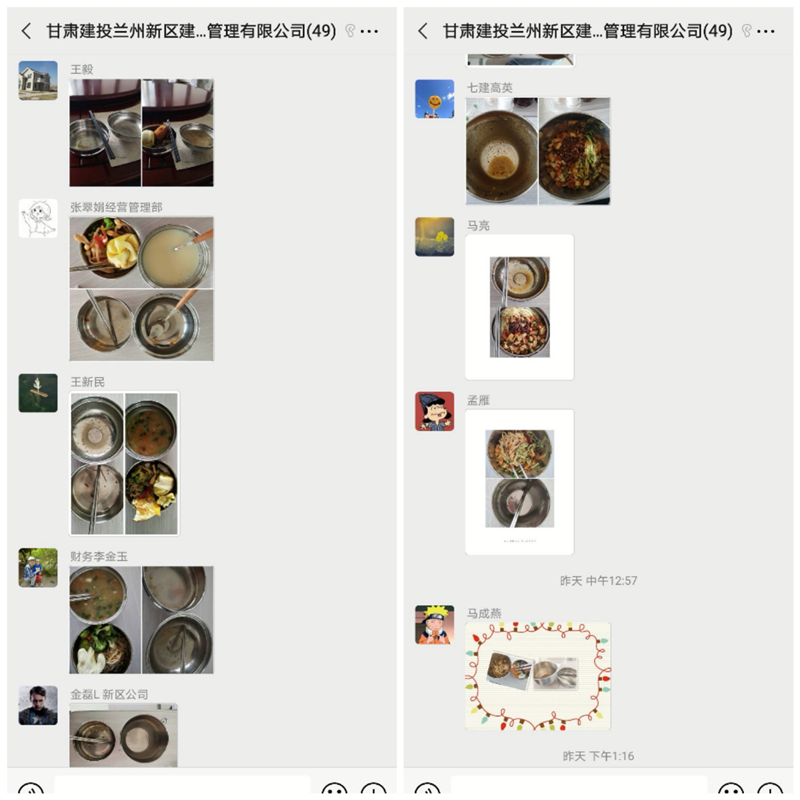 活動時間為2020年9月7日至11日。活動期間,每餐前后,新區(qū)公司全體干部職工分別拍攝照片,記錄“光盤瞬間”,分享至公司微信群內(nèi),進(jìn)行線上打卡。