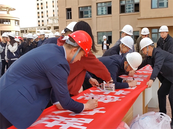活動(dòng)伊始,由甘肅建投新區(qū)公司總經(jīng)理蘇立軍同志對(duì)“百日攻堅(jiān)”行動(dòng)進(jìn)行安排部署。蘇立軍同志指出,項(xiàng)目在疫情影響和資金困難等多重挑戰(zhàn)下,通過(guò)新區(qū)公司與職投公司的共同努力,最終實(shí)現(xiàn)順利復(fù)工,要把握好這個(gè)關(guān)鍵機(jī)遇,在確保安全生產(chǎn)的前提下,全體參建人員要鼓足干勁、攻堅(jiān)克難,以黨建為引領(lǐng),確保項(xiàng)目各項(xiàng)任務(wù)按期完成。之后,職投公司副經(jīng)理金杰貴同志對(duì)項(xiàng)目建設(shè)提出了具體要求,由項(xiàng)目各參建單位管理人員在“百日攻堅(jiān)”橫幅上進(jìn)行簽名。