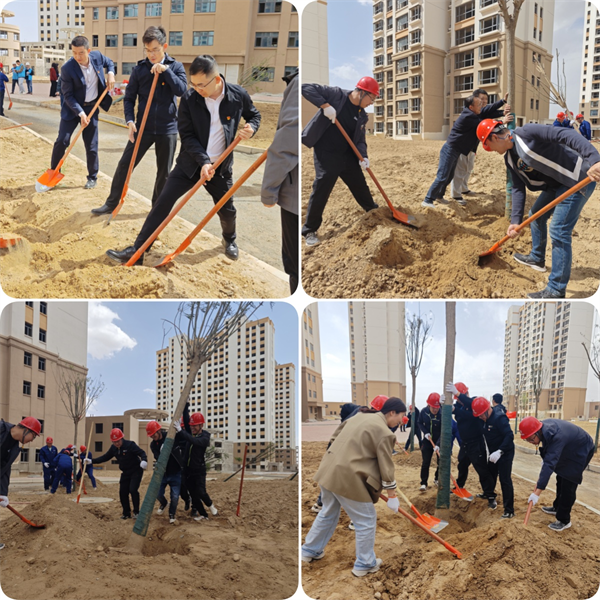 活動(dòng)最后,全體人員前往植樹(shù)區(qū)域,在甘肅建投新區(qū)公司技術(shù)員的現(xiàn)場(chǎng)指導(dǎo)下開(kāi)展義務(wù)植樹(shù)活動(dòng)。植樹(shù)現(xiàn)場(chǎng),大家熱情高漲,分工明確,有的揮鋤挖坑,有的扶樹(shù)培土,有的澆水灌溉,每道工序都一絲不茍,呈現(xiàn)出一派熱火朝天的勞動(dòng)景象。經(jīng)過(guò)大家的共同努力,80余株國(guó)槐隨風(fēng)搖曳,為瑞嶺嘉苑項(xiàng)目現(xiàn)場(chǎng)增添了一道亮麗的風(fēng)景線。