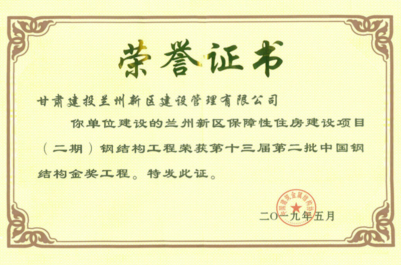 “中國鋼結(jié)構(gòu)金獎”榮譽證書