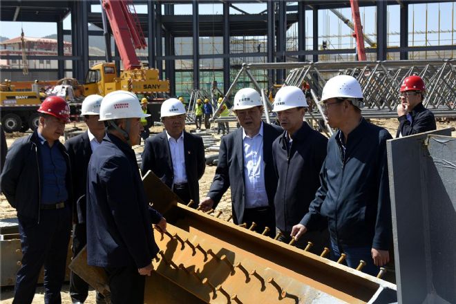 慰問活動開始前,馬建峽與嚴(yán)永紅、郭震、何謀保、馮勇慧等甘南州、七建集團(tuán)及鋼結(jié)構(gòu)公司相關(guān)領(lǐng)導(dǎo)參觀了施工現(xiàn)場,詳細(xì)了解了項目施工的整體進(jìn)展情況、后續(xù)工作計劃安排及項目施工建設(shè)過程遇到的困難與問題,并就相關(guān)問題提出了解決辦法。