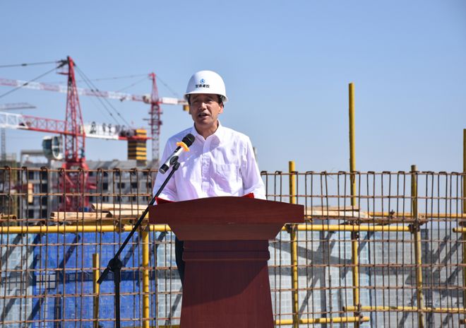 新區(qū)公司黨委書(shū)記、董事長(zhǎng)馬建峽為封頂儀式致辭