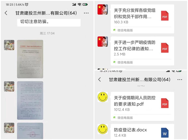 新一輪疫情發(fā)生以來,甘肅建投新區(qū)公司黨委嚴(yán)格按照地方疫情防控部署要求,積極響應(yīng)上級黨委號召,科學(xué)判斷形勢、精準(zhǔn)把握疫情,統(tǒng)一領(lǐng)導(dǎo)、統(tǒng)一指揮、統(tǒng)一行動,認(rèn)真做好各項疫情防控工作。要求各干部職工認(rèn)真履行職責(zé)和使命,根據(jù)各自職責(zé)分工,自覺提高站位、強化大局意識、主動擔(dān)當(dāng)作為,全面形成聯(lián)防聯(lián)控、群防群治的疫情防控工作合力。