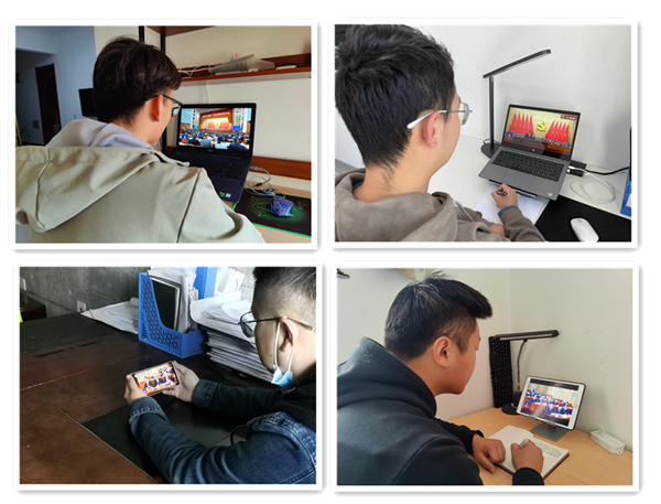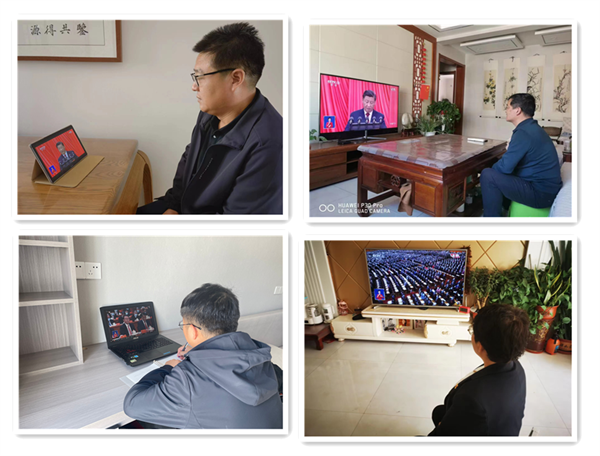 各位黨員干部準時收看大會開幕式,精神振奮、全神貫注、邊聽報告邊做記錄。