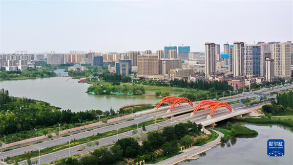 這是我國西北地區(qū)首個國家級新區(qū)蘭州新區(qū)城市面貌(2022年8月10日攝,無人機照片)。新華社記者 陳斌 攝